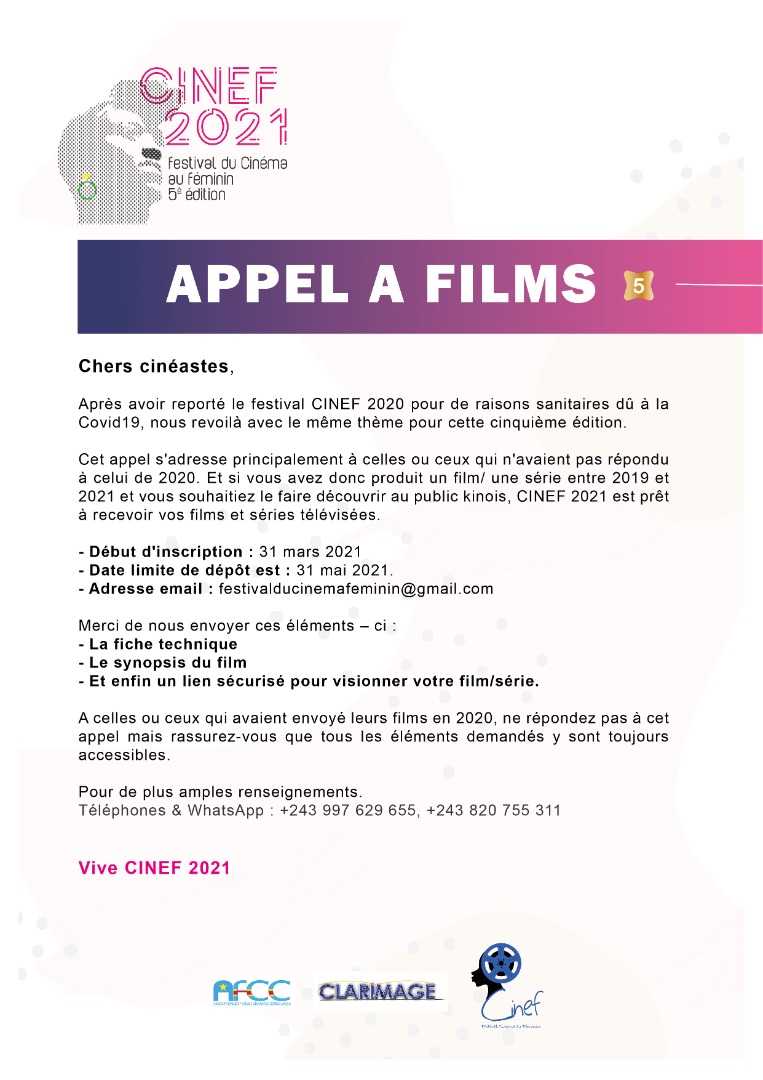 Initialement prévue au cours de l’année 2020 mais reportée pour des raisons sanitaires dues à la pandémie de Coronavirus, la 5ème édition du Festival du cinéma au féminin (CINEF) aura enfin lieu cette année 2021, rassure madame Clarisse Muvuba, Directrice générale de Clarimage.